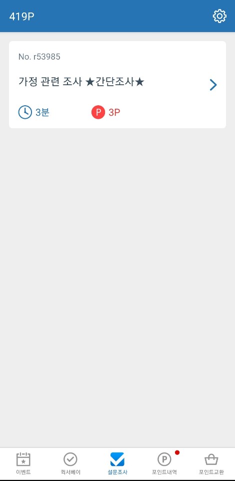 이건 PC에서만 신청이 가능합니다. 퀵 서베이 주제를 선정하셔서 선택이 되면 1000P를 받으실 수 있습니다. 자세한 건 전에 PC버전으로 쓴 저의 게시물을 참조해주세요.
