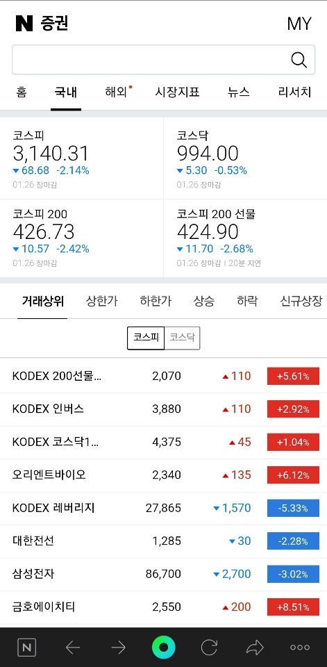 거래 상위 - 당일 높은 거래량을 보인 주식