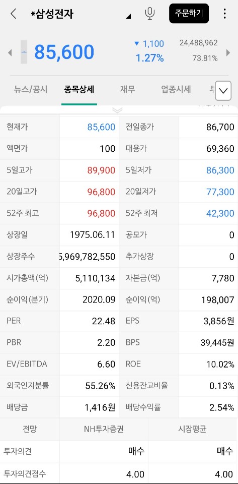 ※ 예시 주식은 우리나라 1등 기업 '삼성전자'를 가져왔습니다