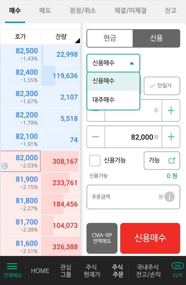 신용매수 : 신용담보비율에 따른 평가자산 대비 약 2.5배의 금액 가능