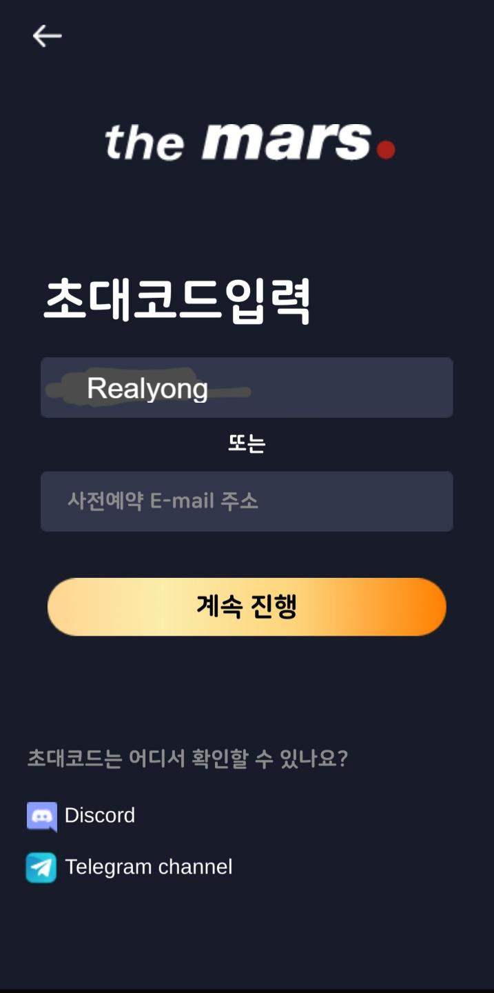 2. 더 마르스 코인 채굴 앱 마스 마이닝 (추천 코드: Realyong)