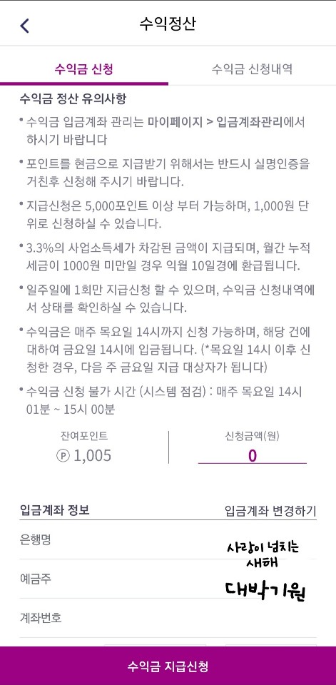 매주 금요일마다 입금을 해주는 혜자스러움...