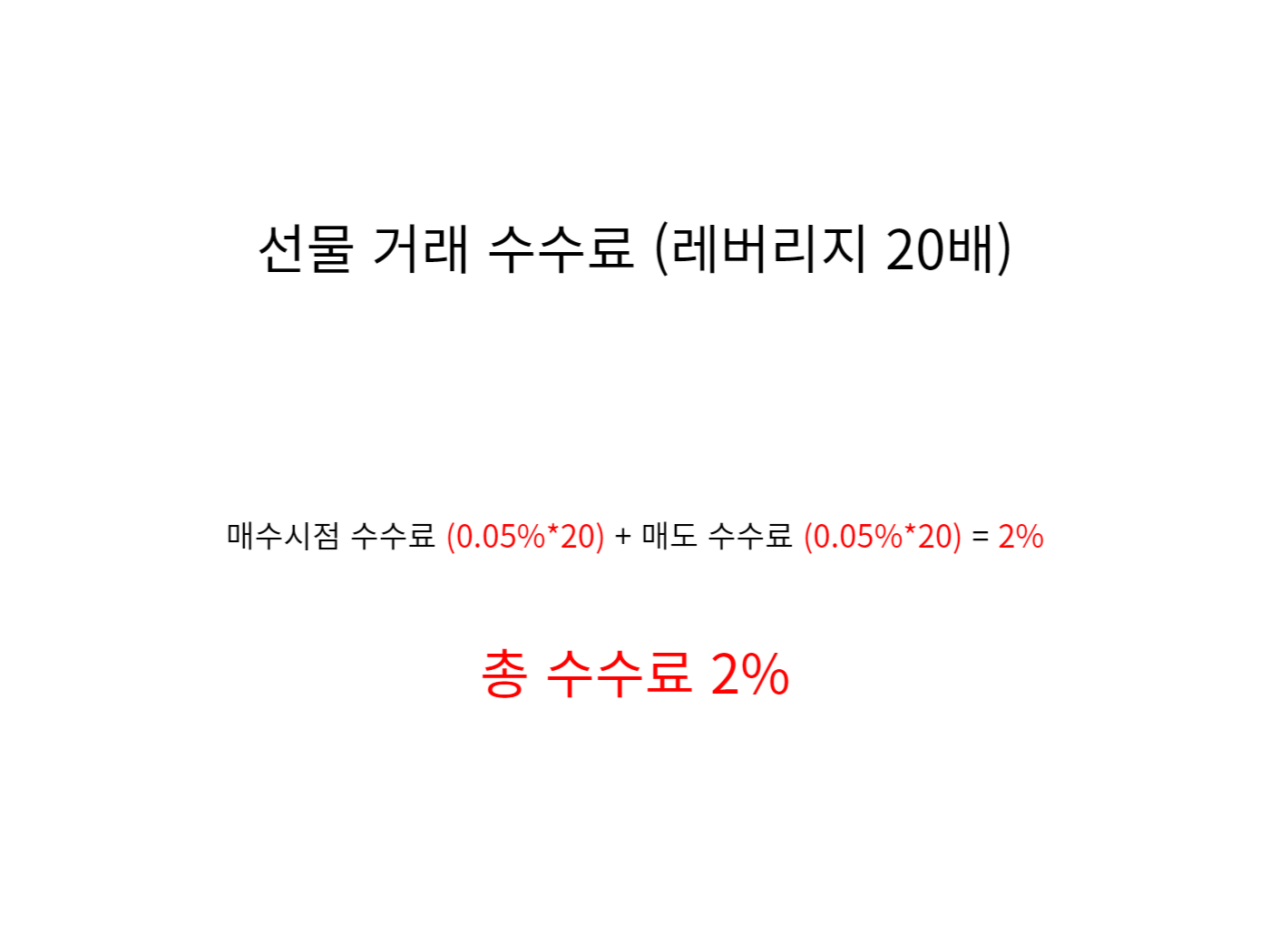 매수시점 수수료 (0.05%*20) + 매도 수수료 (0.05%*20) = 2%