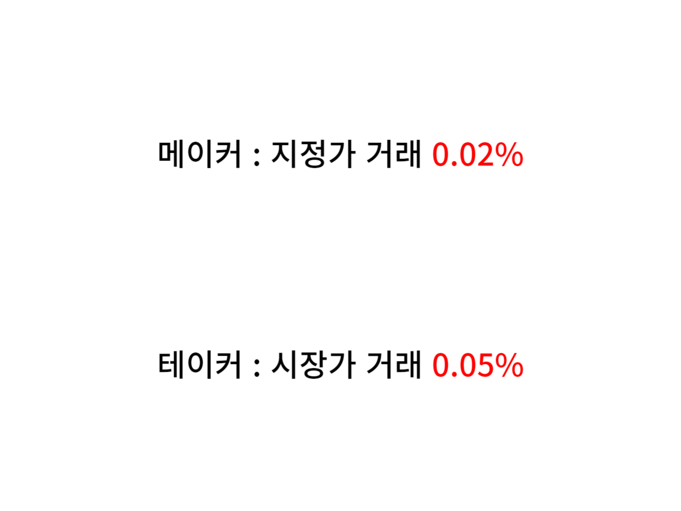 (이때 메이커는 지정가 거래, 테이커는 시장가 거래를 뜻합니다.)