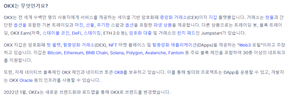 OKX는 2022년 1월부터 브랜드를 변경하고 유저들에게 많은 혜택을 주면서 운영중입니다.