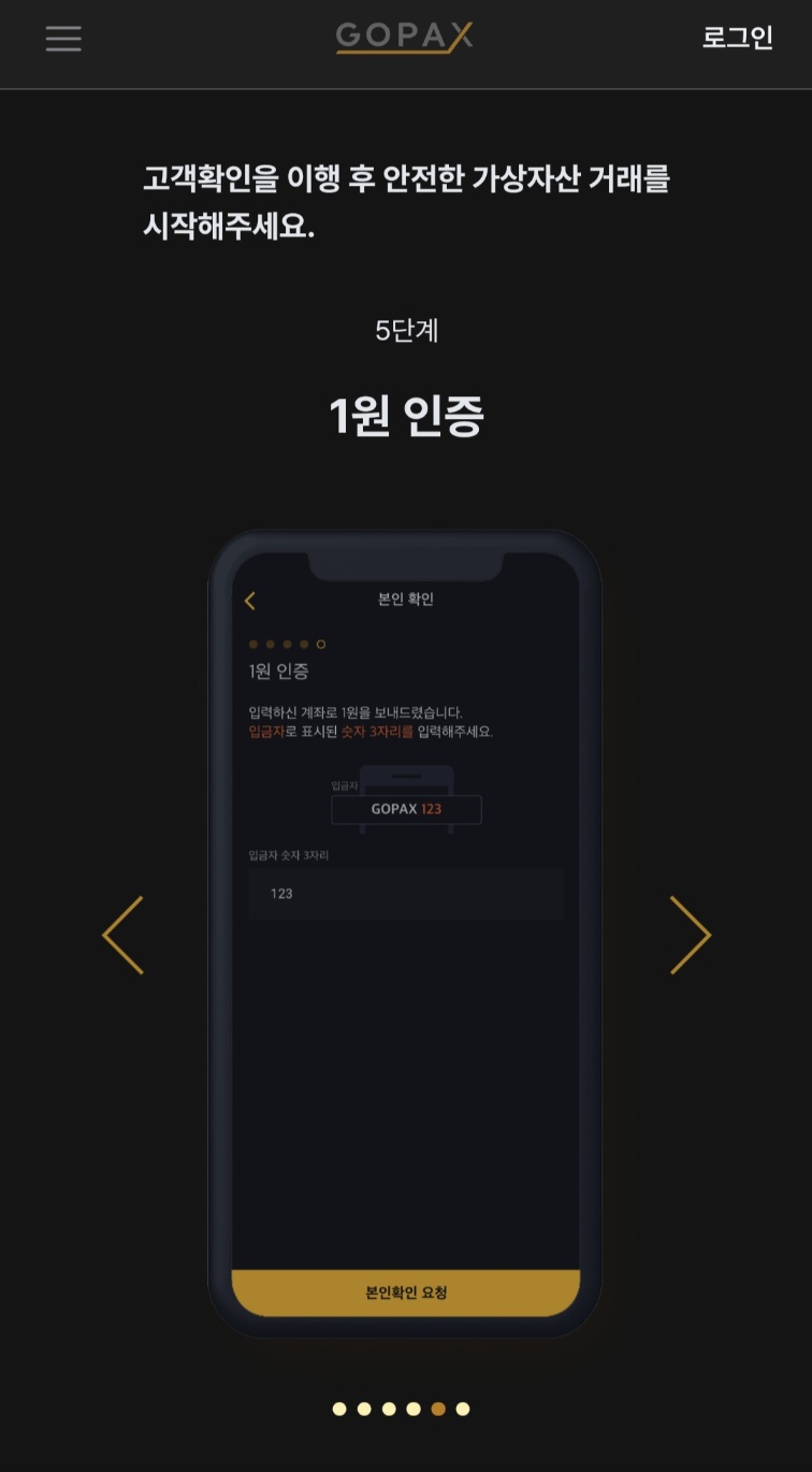 1원과 함계 입금자 명의로 들어오는 GOPAX"OOO"에 뒤에 숫자를 입력하시면 됩니다.