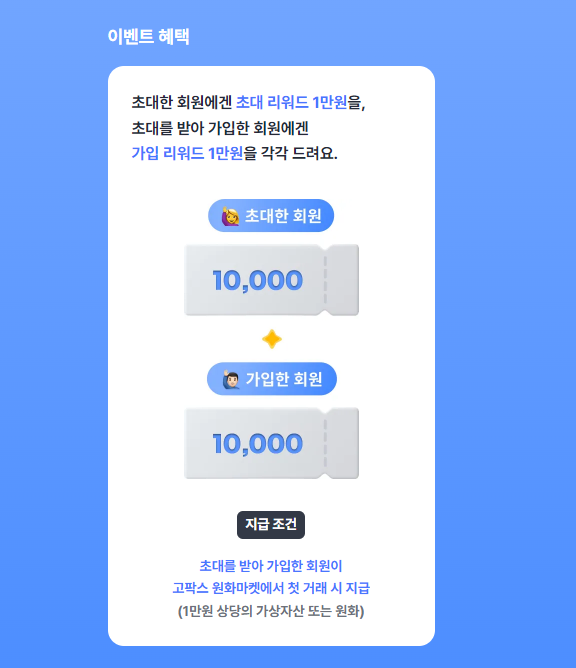 첫 원화 거래를 하면 10,000 KRW를 지급해줍니다.