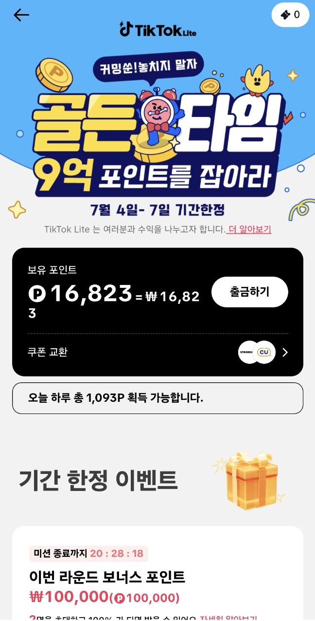 이번 포스팅은 진짜 역대급 미션과 혜택으로 돌아온 "틱톡 라이트" 입니다.