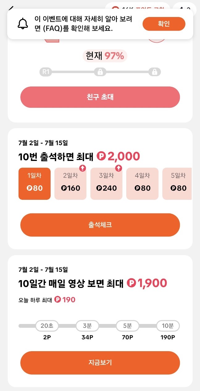 현재 얼마 안남은 이벤트로 친구초대 이벤트가 있습니다.