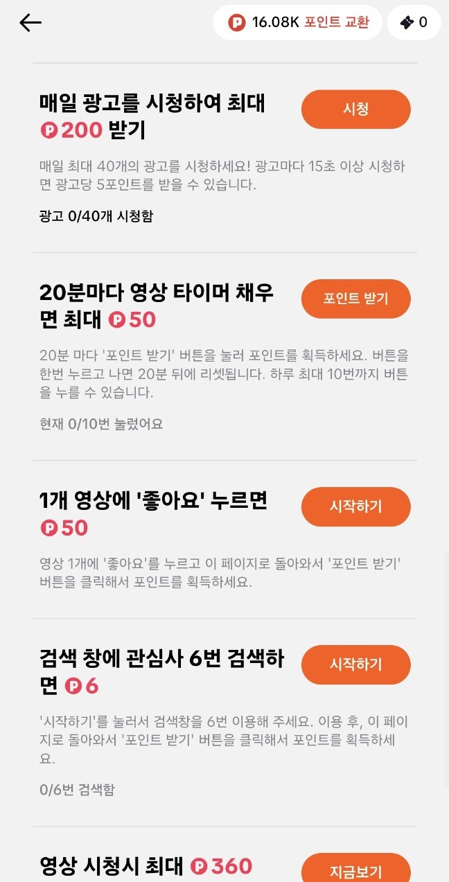 또한, 여러가지 미션을 하면서 포인트를 계속 얻을 수 있습니다.