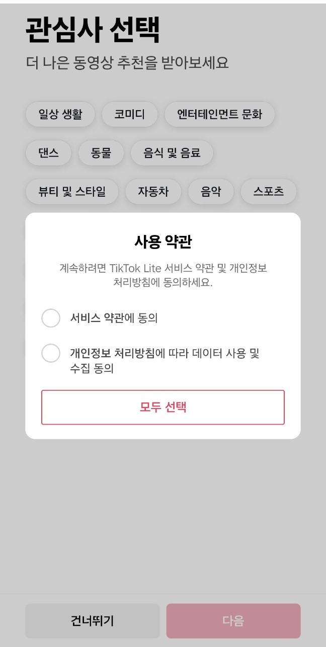 원하는 영상을 보기위해 관심사를 선택하고 회원가입을 진행하시면 됩니다.