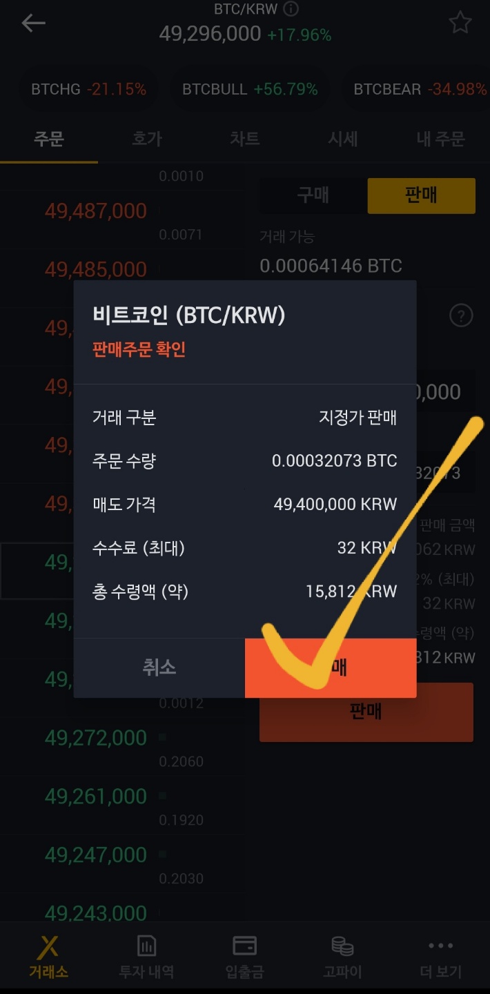 저는 가지고 있는 비트코인을 매도하기 위해 비트코인을 선택하겠습니다.