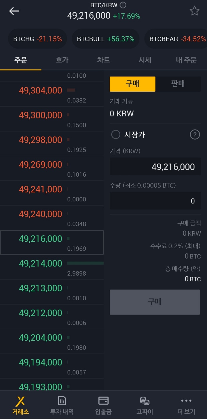거래소에 들어가서 가상화폐를 선택해주세요.