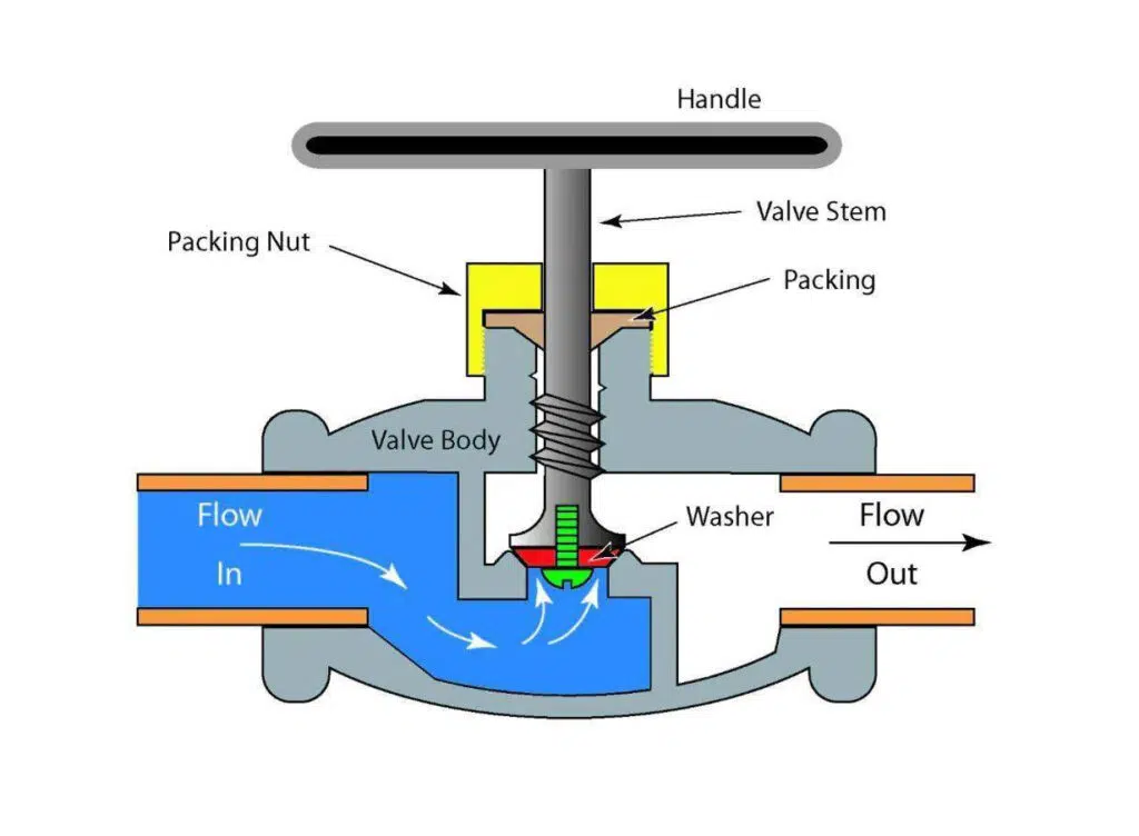- 글로브밸브 : 스톱밸브라고도 함, 구조상 유량조절용으로 사용되는 밸브