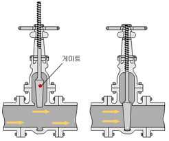 - 게이트 밸브 : 구조상 퇴적물이 체류하지 않음, 유체의 차단을 주목적으로 일반 배관용으로 가장 많이 사용