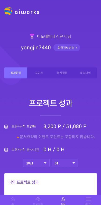 그리고 프로젝트와 봉사 두 가지를 선택하여 참여할 수 있습니다.