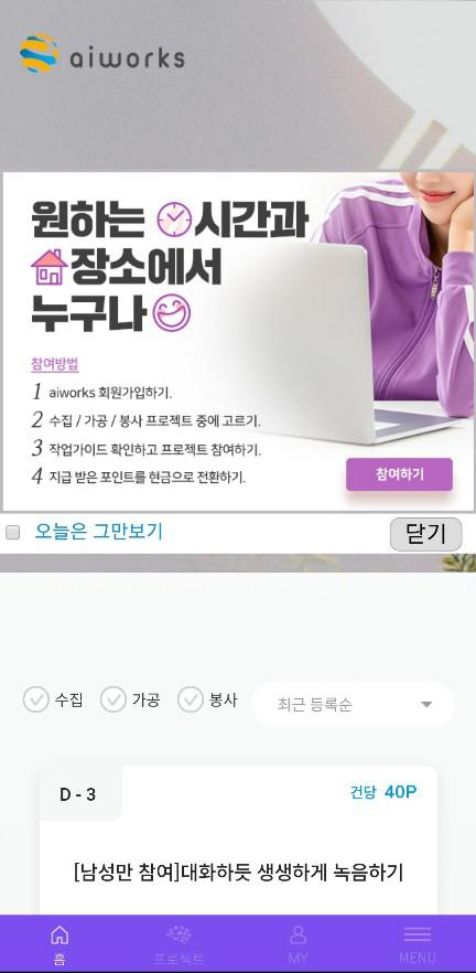이번 앱테크 추천은 Ai를 위한 데이터 수집, 가공을 작업하고