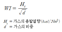 가스의 연소 특성을 나타내는 지표로 천연가스, LPG, 도시가스 등의 호환성을 판단하는 데 사용