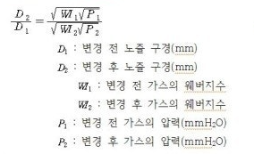 D : 노즐의 지름(mm), P : 노즐 직전의 가스압력(mmH2O)
