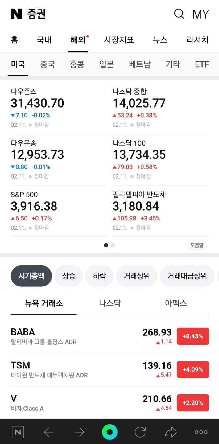+네이버 증권에서 보이는 차트는 우리나라 주식차트와 같으니 상관없습니다.