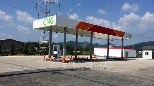 8. 압축도시가스 자동차 충전소이다. 괄호 안에 알맞은 숫자를 쓰시오.
