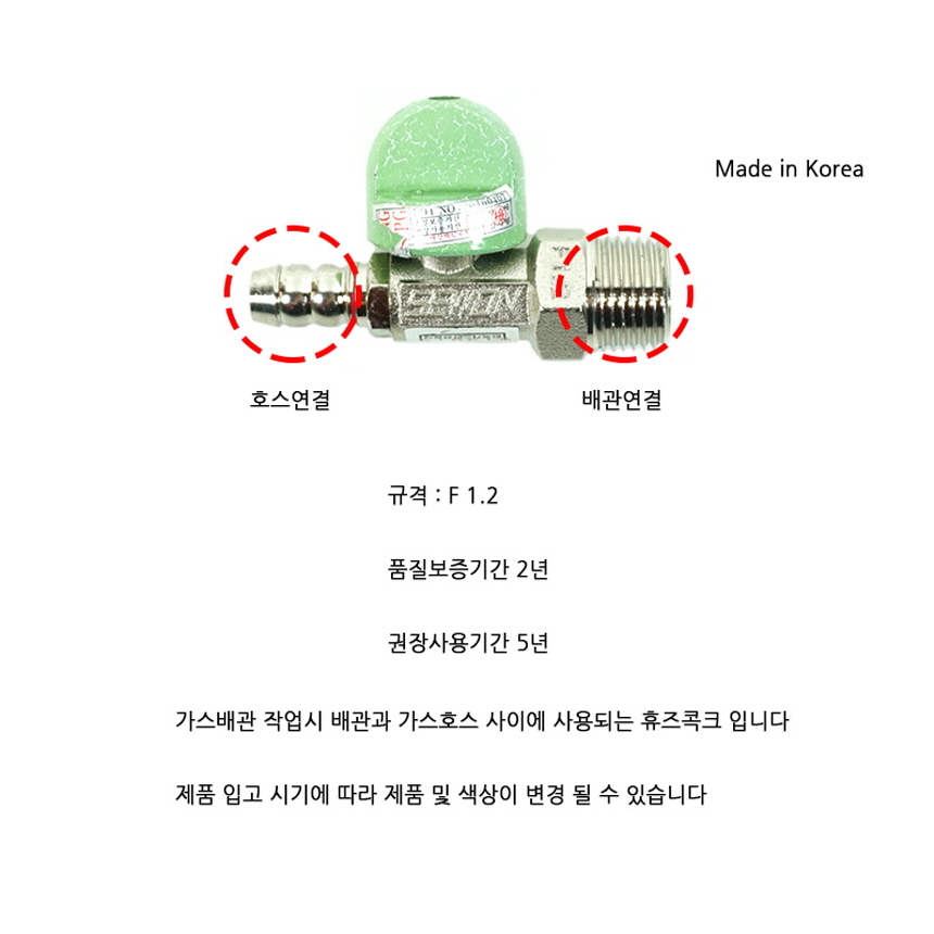 - 가스유로를 볼로 개폐하고, 과류차단 안전기구(호스가 빠지거나 절단되어 규정량 이상의 가스가 흐르면 가스를 차단하는 안전장치)가 부착된 것