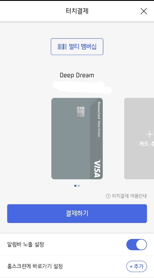지갑이나 카드를 들고 다니지 않아도 핸드폰에서 터치 결제를 켜고