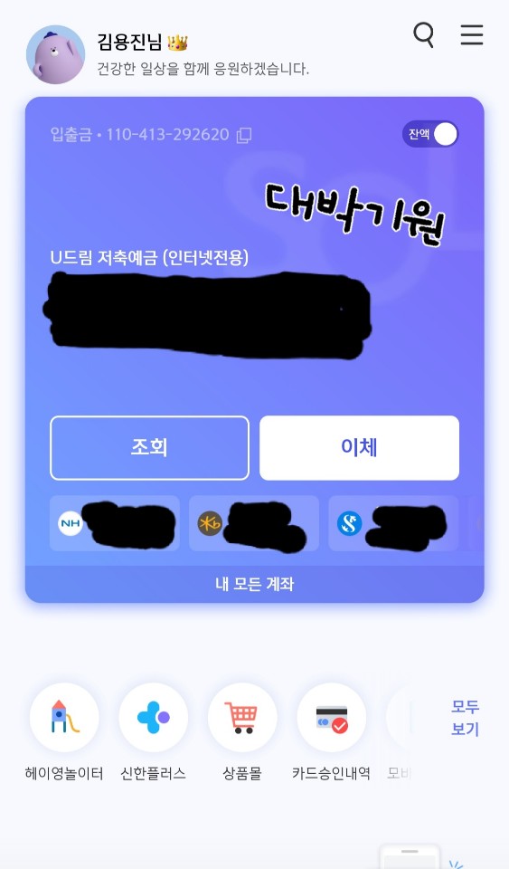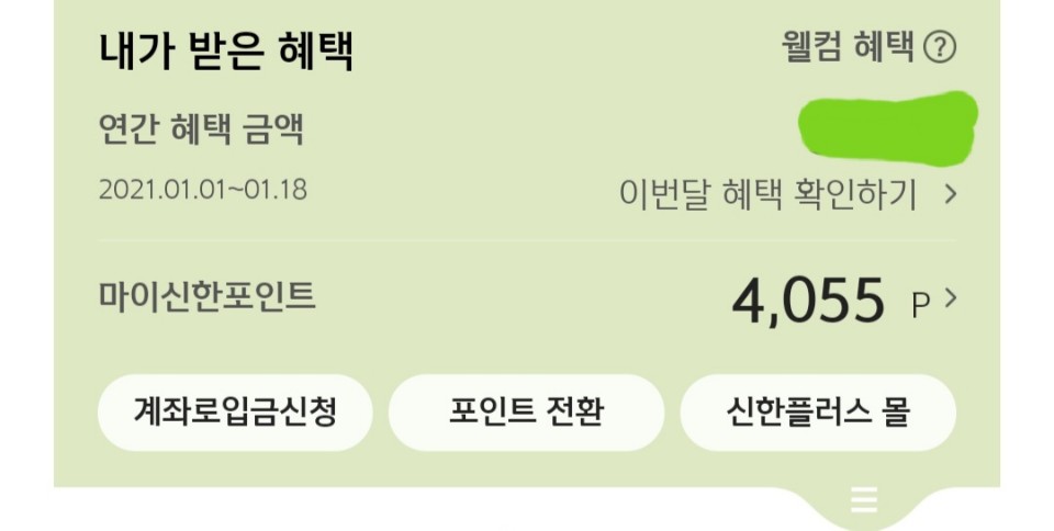 계좌입금, 포인트 전환, 신한 플러스 몰