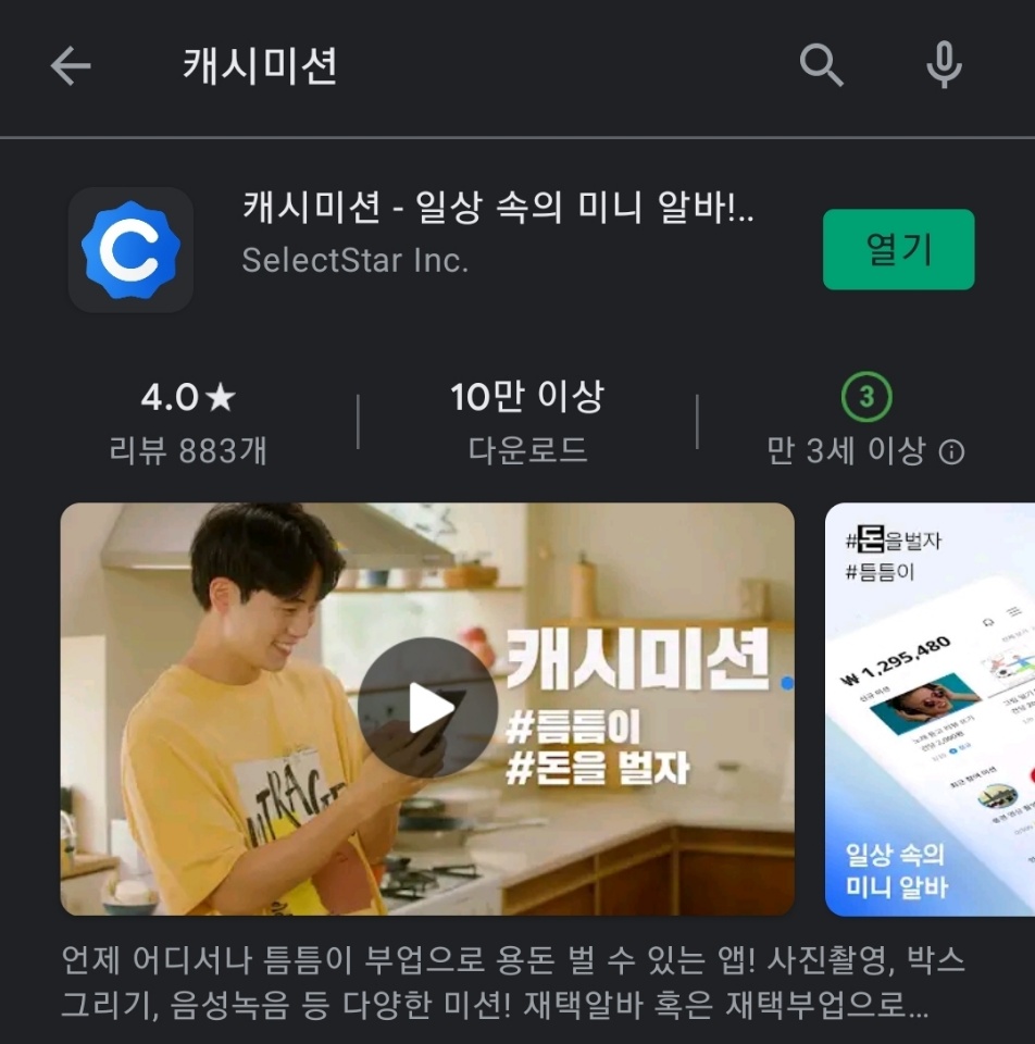 확실히 10만 이상 다운로드에 별점이 4점이나 되네요. 실행해보겠습니다.