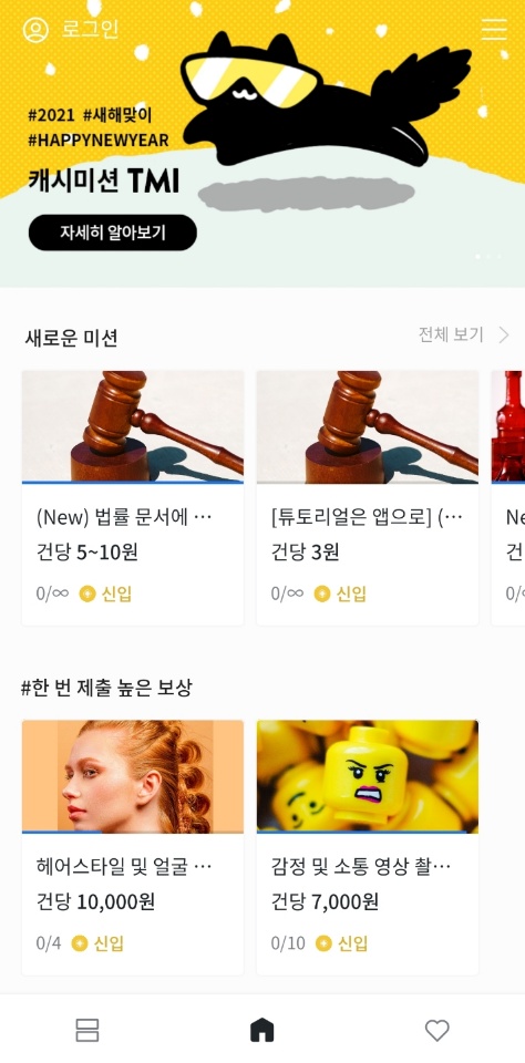 보니까 한 번에 10000원!! 을 주는 미션도 보입니다. 혜자네요!