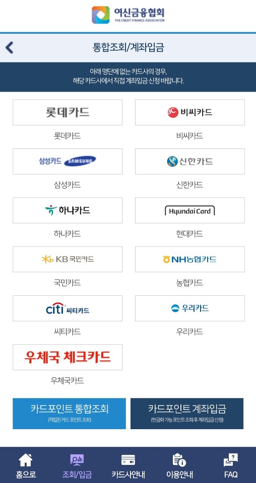 #여신금융협회 #카드 포인트 통합조회 #여신금융협회 카드 포인트 통합조회 #현금 입금