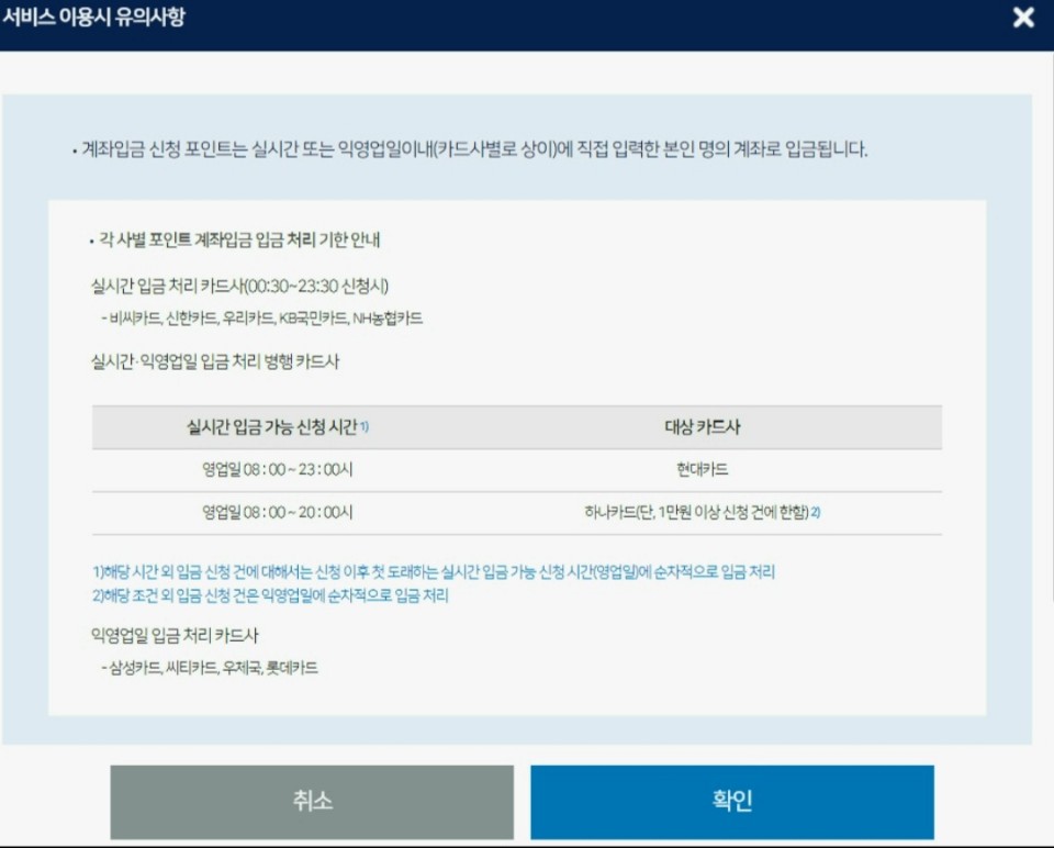 2. 23:30 ~ 00:30 에는 이용하실 수 없습니다.(은행 점검 시간)