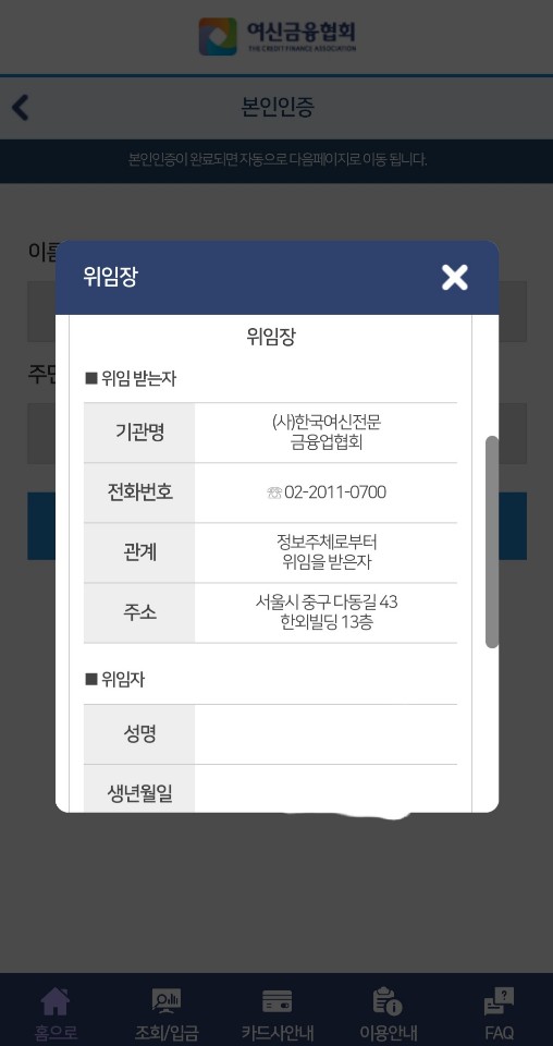 그 후에 위임장이 나오는데 위임장을 수락해주세요. 그래야 진행이 가능합니다.